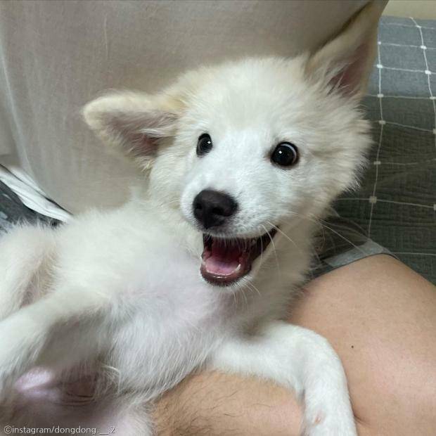 처음엔 동동이를 임시 보호만 하려고 데리고 왔지만 너무나 사랑스러운 모습에 정들어 결국 입양까지 하게 됐다는 보호자.
