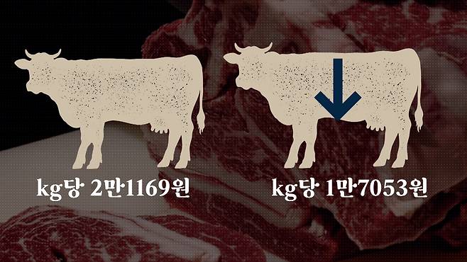 근데 현재 한우는 공급과잉 상태다. 지난 3월 평균 한우 도매가격은 지육 ㎏당 1만7053원으로, 2021년 평균(2만1169원)보다 19% 하락했다.
