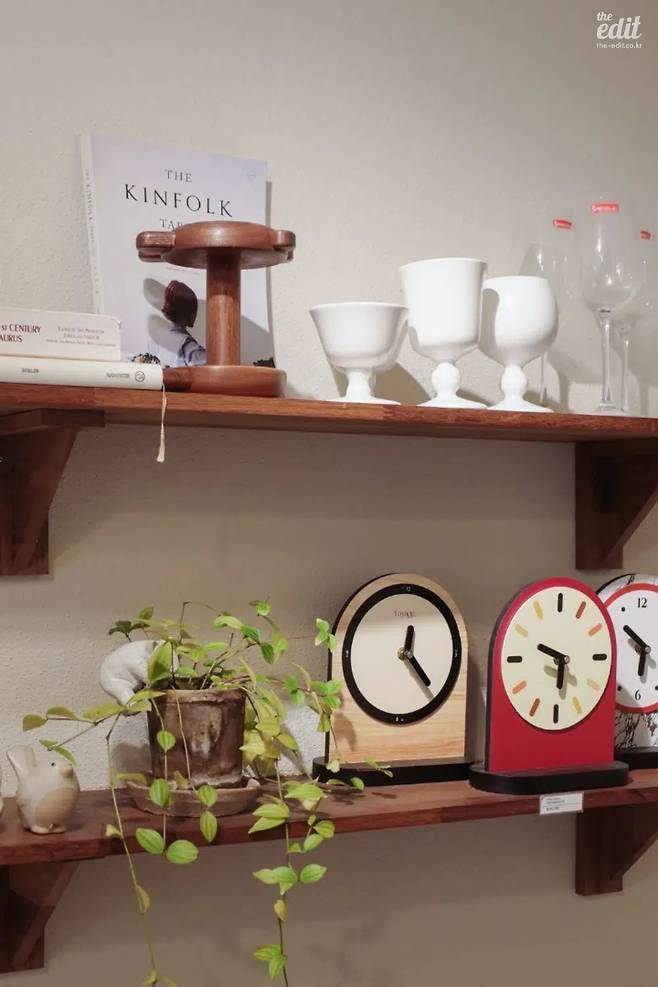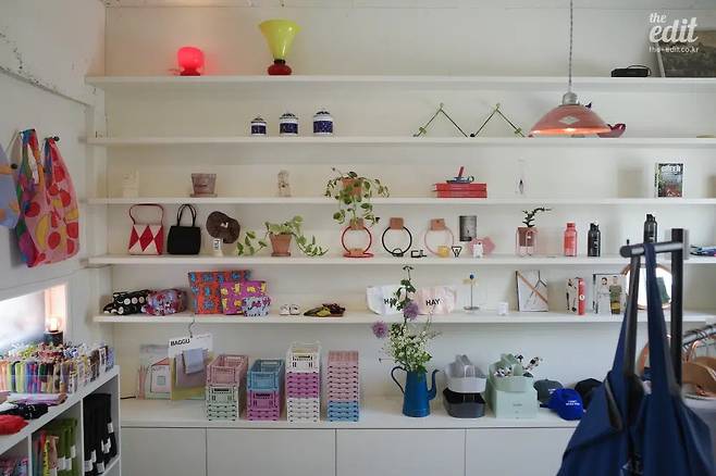 한쪽 벽면 전체를 기다란 선반이 장식한다. 책, 수납함, 촛대 등 카테고리 구분 없이 늘어선 물건들이 보인다. 각자 다른 모양과 색상의 물건을 지녔음에도 절묘한 조화를 이루는 모습이 인상적이다. 특별히 사고 싶은 것 없이 들어왔어도 충분히 재밌는 쇼핑을 즐길 수 있을 테다. 팔콘(Falcon) 법랑 그릇이나 바쿠(BAGGU) 나일론 백 같은 해외 브랜드 제품부터 파스텔톤 에코백으로 대표되는 루프트 맨션 PB 상품까지 선택지는 다양하므로. 매장 경험이 만족스럽다면 광안리에 위치한 루프트 민락 매장도 함께 방문해 볼 것을 권한다.