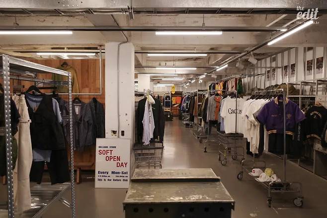 해운대 해리단길에 놀러 온 이들이라면 한 번씩 들르게 되는 우일맨션. 1978년에 지어진 이 한 동짜리 맨션에 카페, 타코 음식점, 보틀숍 등 작은 가게들이 오밀조밀 모여 있다. 아메리칸 캐주얼 기반의 빈티지 셀렉트숍 올리언스 스토어 또한 이곳 지하 1층에서 강렬한 존재감을 드러낸다. 개성 넘치는 수많은 부산의 빈티지숍 가운데 올리언스 스토어를 꼭 와보고 싶었던 이유? 다름 아닌 자체 제작 상품이 궁금했기 때문이다.