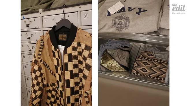 1950년대부터 1990년대를 아우르는 빈티지 아이템, 이를 올리언스 스토어의 색깔로 재해석한 리메이크 제품이 철제 행거를 가득 채운다. 50년대 쿠바(KUBA) 원단을 활용해 에스닉한 무드를 드러내는 MA-1 재킷, 60년대 미군 캔버스 더플백을 분해하고 재조합해 만든 탄탄한 숄더백, 70년대 페르시안 러그 조각을 수놓은 리바이스 501 데님 팬츠 등 특정 시대와 지역의 산물이 긴 세월을 거쳐 새로운 형태의 아이템으로 재탄생했다. 빈티지 문화에 매료된 이들과 유니크한 디자인의 옷을 찾는 이들 모두를 설레게 할 리워크 제품군. 오래된 옷과 직물의 매력을 느껴보고 싶다면 주저 말고 방문해 보자.