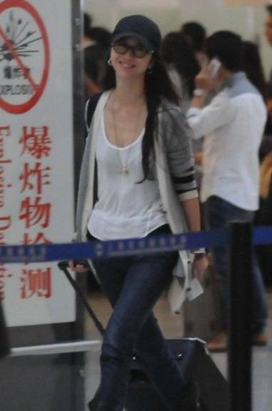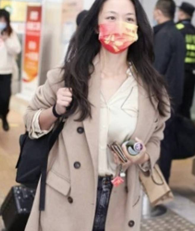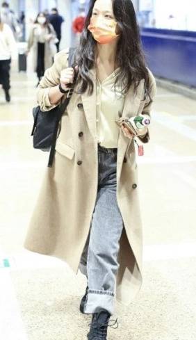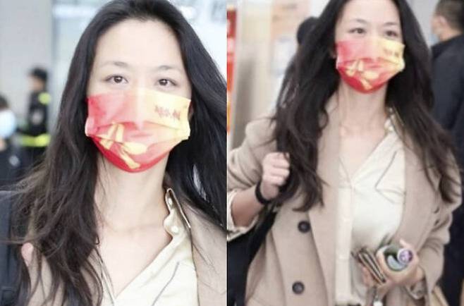탕웨이는 민낯으로 공항 패션을 선보여 눈길을 끌었다.