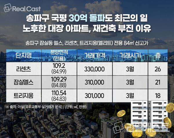 재미있는 사실은 송파구조차도 국평이 30억 원을 돌파한 것이 올해가 처음이라는 점입니다.