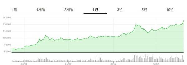 그 뿐만 아니라 최근 1년 최고가였던 49만9500원마저도 돌파하며 추가 상승 가능성까지 농후하다.