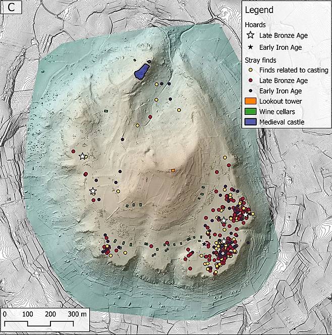 이어 "유럽의 청동기시대 지배자들은 이런 특이한 지형에 전초기지 같은 전략적인 요새와 거주 시설을 함께 지었을 것"이라며 "드론과 라이다(LiDAR) 기술을 활용해 언덕 지표면을 정밀 스캔하고 지상에서 금속탐지기로 조사를 병행한 값진 성과"라고 덧붙였다.