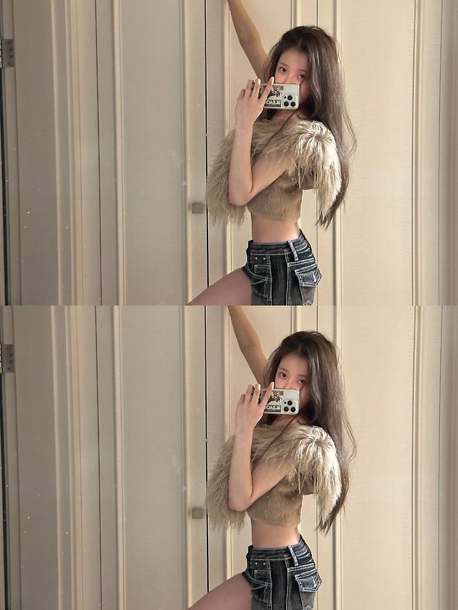 뿌리 부분부터 끝까지 결을 살려 정성스럽게 관리된 모습은 주이 씨의 건강하고 활기찬 이미지를 잘 보여줍니다.