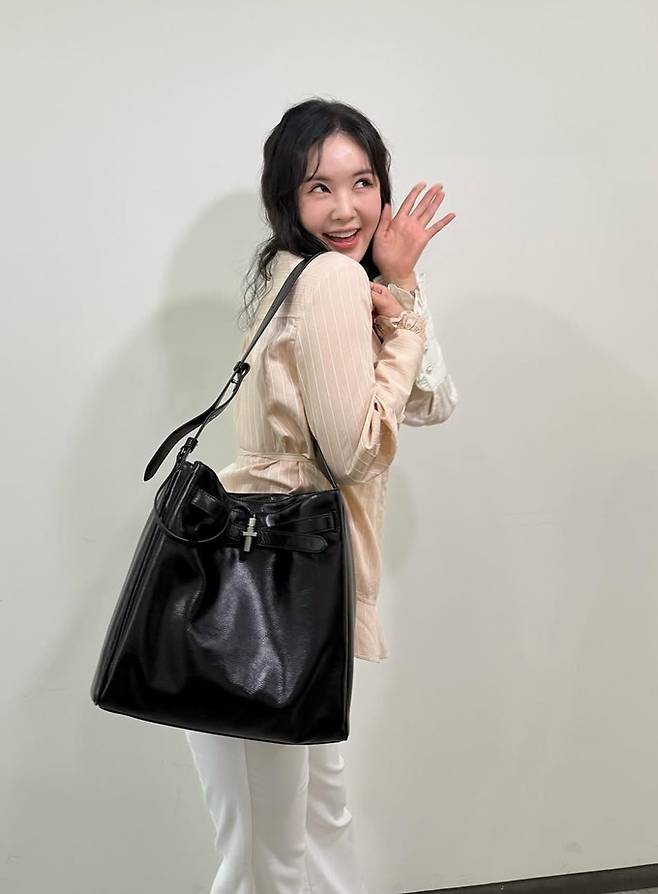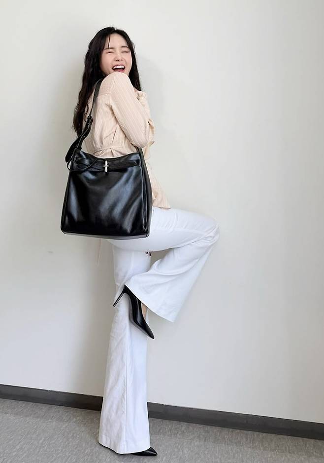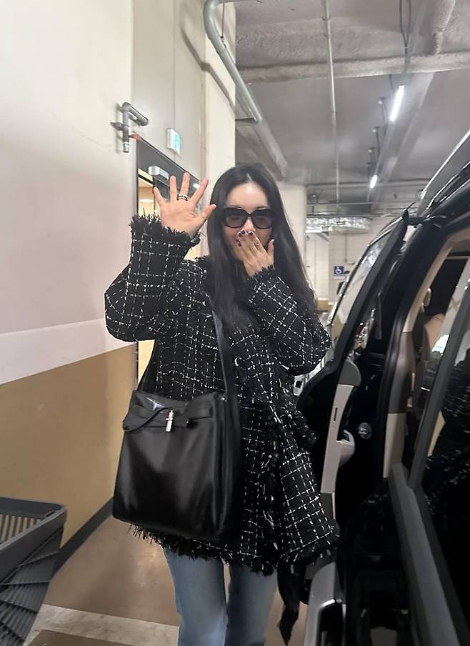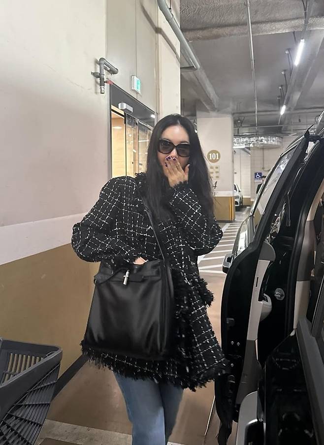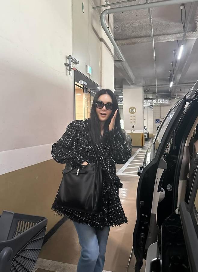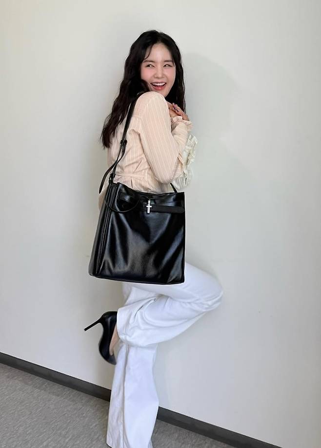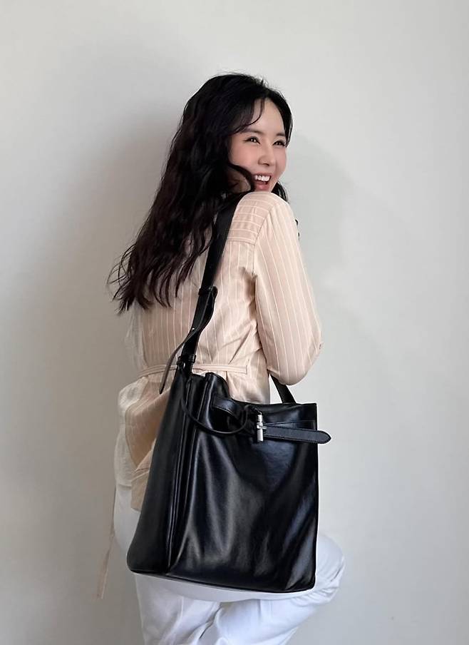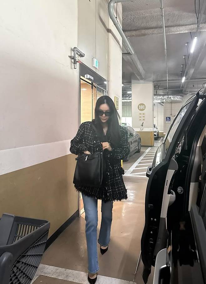 방송인 장영란이 절친 홍진경이 선물한 가방에 셔켓와 트위드 재킷으로 멋스러운 출근룩을 연출했다.