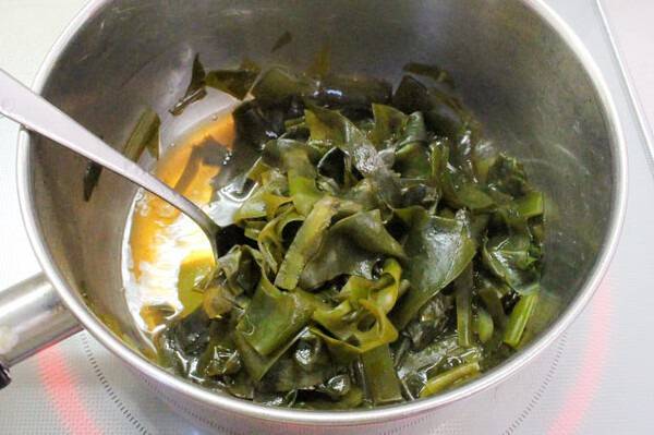반대로 쌀뜨물이나 멸치육수에 불리면 미역의 색이 진한 청록색으로 살아난다.