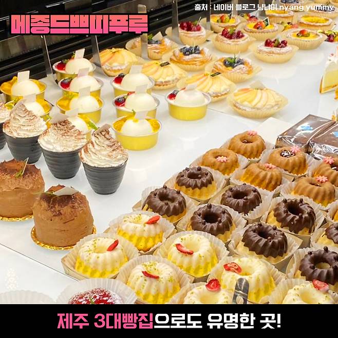 메종드쁘띠푸르는 방부제나 화학첨가물을 넣지 않아 건강 베이커리 브랜드로도 유명한 곳이라고 해요:) 베이커리와 디저트 종류 모두 다 눈길을 사로잡을 만한 비주얼과 맛을 지니고 있어 제주도에 놀러 와서 선물로 사 가는 것도 좋을 것 같아요~