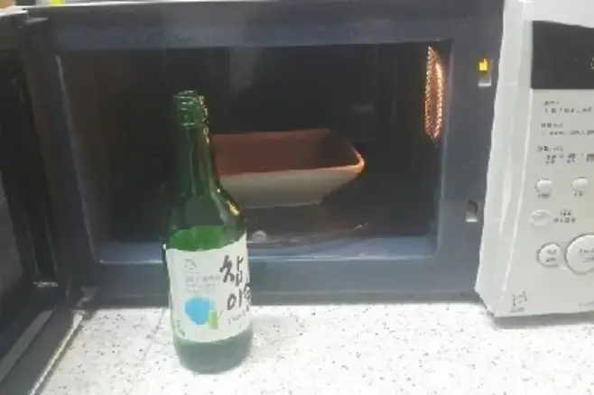 방법은 정말 쉽고 간단합니다. 유리 또는 도자기 그릇에 소주 반 컵 정도를 붓고 전자레인지에 넣은 후 30~40초간 돌려 주세요. 이때 소주가 끓기 직전 증기가 맺힐 정도로만 가열하는 것이 핵심이에요.