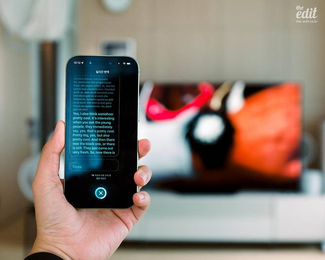 실시간 번역을 위해서는 먼저 사용할 언어 팩을 내려받은 후, 번역 앱에서 사용할 언어를 선택해서 번역을 시작하면 됩니다. 이걸 어떻게 테스트해 볼지 고민하다가 제가 아는 독일 시계 유튜브 채널에서 영상 하나를 무작정 틀어봤어요. 번역 결과를 상대방과 비슷한 톤의 목소리를 에어팟으로 들려주면서 아이폰에서도 바로 보여줬습니다. 여기서 제가 저에게 익숙한 언어로 답하면 아이폰이 번역을 해서 상대방에게 보여주는 방식입니다. 상대방도 에어팟을 끼고 있다면 아이폰을 보여줄 필요 없이 서로의 에어팟으로 실시간 번역을 할 수도 있어요. 제가 독일어를 못해서 통역 결과에 대한 완전한 평가는 힘들지만, 최소한 맥락상으로는 제대로 된 번역을 제공했습니다. 실시간 번역은 애플 인텔리전스를 지원하는 아이폰 15 프로 이후의 아이폰에서 사용할 수 있고, 현재 베타 테스트 중인 iOS 26.1부터는 한국어도 지원할 예정이라 해외에 나갔을 때 많은 도움이 될 것으로 보입니다.