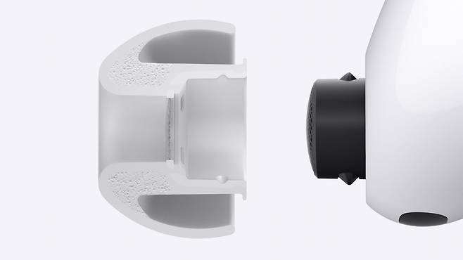어떻게 한 걸까요? 사실 에어팟 프로 3의 ANC 소프트웨어를 총괄하는 오디오 칩은 H2로 에어팟 프로 2나 에어팟 4와 같습니다. 하지만 에어팟 프로 3에는 프로 2에 없던 두 가지가 있어요. 바로 주변 소음을 더 정확하게 감지할 수 있는 추가 마이크와 새로운 이어팁입니다.