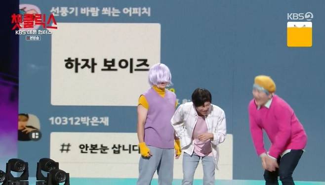 이어 사자 보이즈가 '소다팝'을 추려고 하자 '쏟은 밥', 'X팝' 등 채팅이 이어졌다.