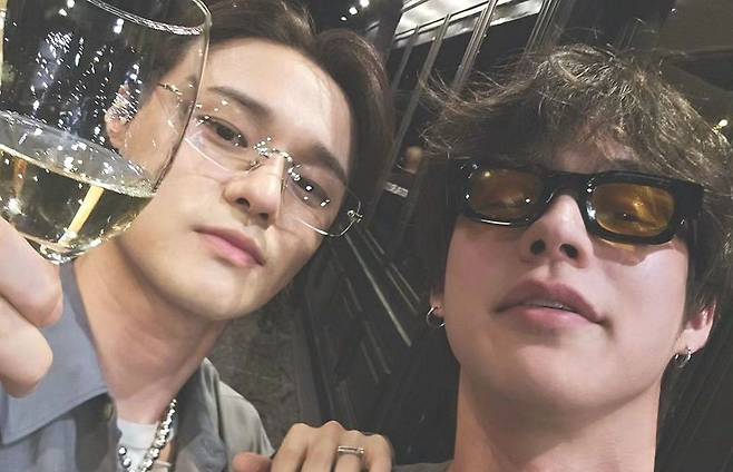 공개된 사진 속 가수 딘은 태국 배우 브라이트 옆에서 카메라를 응시하고 있는 모습이었다. 딘은 개성 넘치는 안경과 패션을 선보였으며, 잔을 들고 편안한 표정을 짓고 있어 팬들의 시선을 집중시켰다.