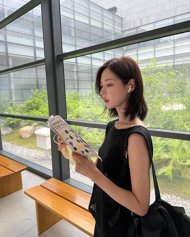 검은색 백팩 속에는 책 한 권이 들어 있었는데, 무심히 펼쳐든 페이지에서조차 지적인 무드가 흘렀어요.