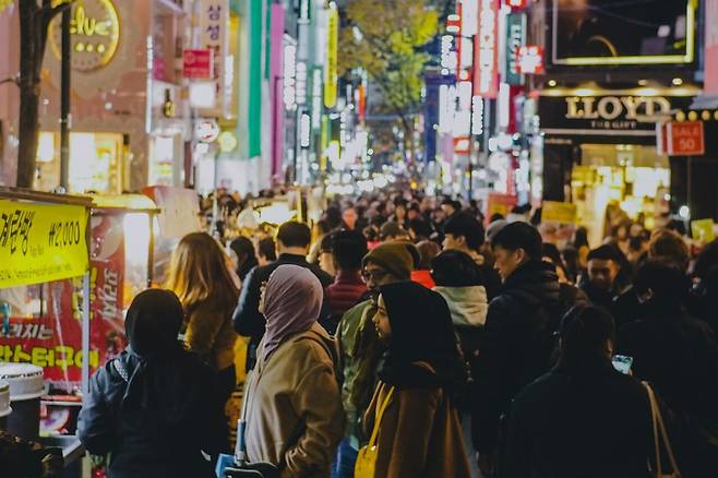 명동은 한국인이 안 보일 정도로 외국인 관광객들의 핫플로, 해외여행을 간접적으로 경험하고 싶다면 명동에 먼저 방문해 보세요.