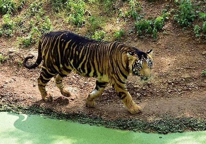 그런데 여기 우리가 아는 호랑이와 완전히 다르게 검은 털을 지닌 일명 검은 호랑이가 인도 정글에서 포착되는 일이 벌어졌습니다.