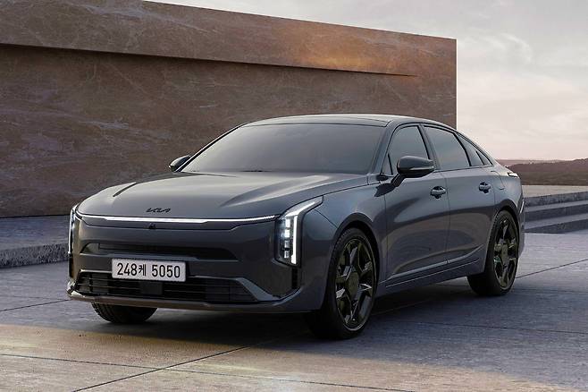 K8은 기아의 최신 디자인 언어를 반영한 모델로, 스타맵 시그니처 라이팅과 패스트백 스타일을 적용해 준대형 세단 시장에서 고급스러운 존재감을 강조했다.