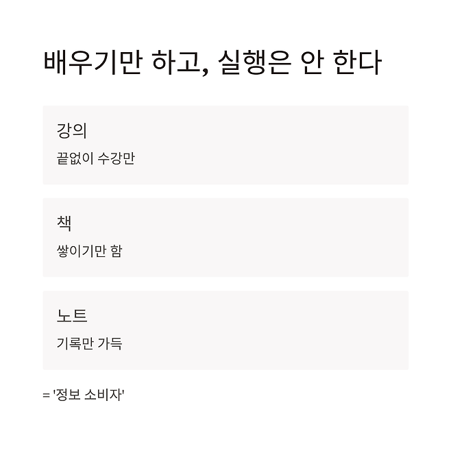 정보는 실행 없인 무의미합니다. 공부는 방향이지, 결과가 아닙니다.