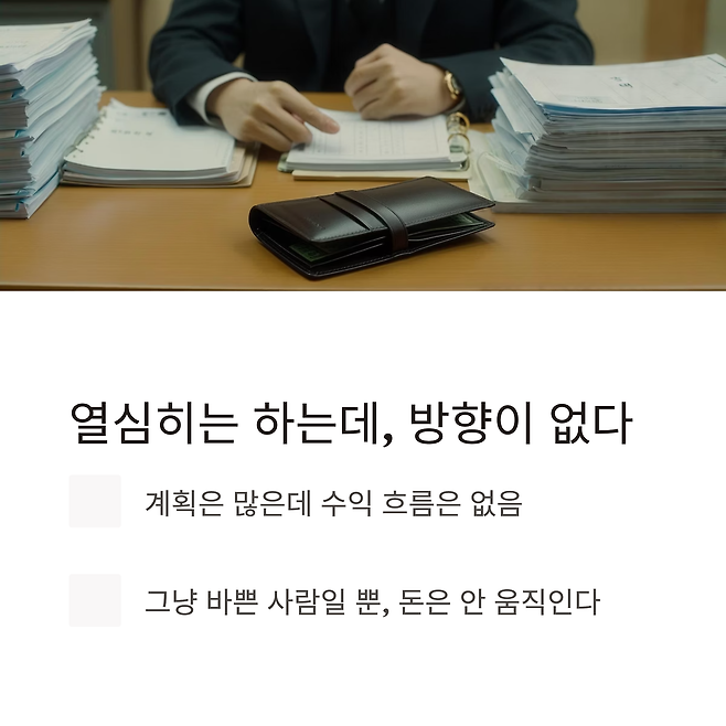 - 그냥 바쁜 사람일 뿐, ‘돈이 도는 구조’는 없음