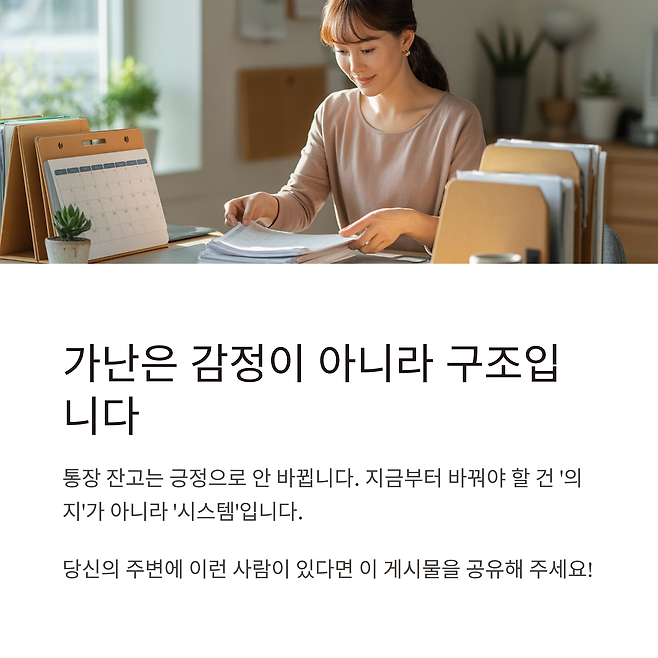 당신이 지금 가난하다면, 이유는 당신이 나빠서도, 노력을 안 해서도 아닙니다.그저 ‘돈이 들어오고 나가는 구조’가 잘못되어 있을 뿐입니다.