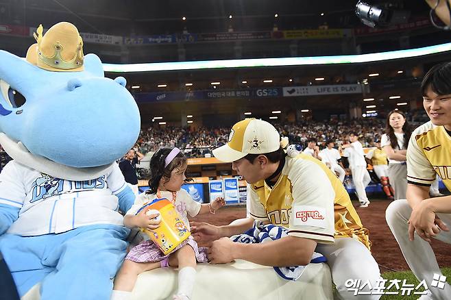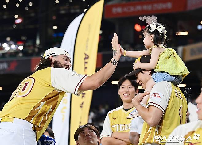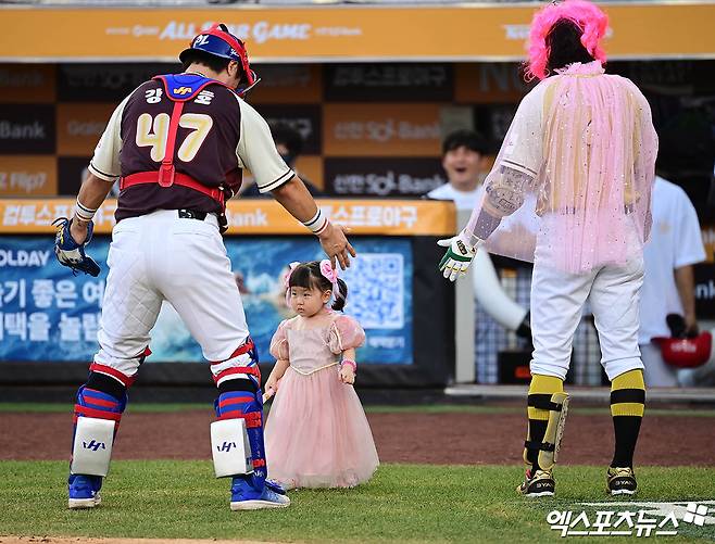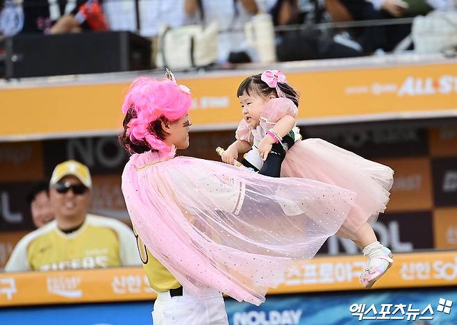 LG 박동원은 '동원참치'로 변신, '아기 다랑어' 채이 양의 손을 잡고 타석에 나서 큰 호응을 얻었다. 사랑스러운 딸의 응원이 통했던 것일까. 박동원은 첫 타석부터 홈런을 쏘아올리며 첫 미스터 올스타의 영예까지 안았다.