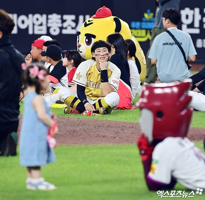 KIA 박찬호는 새얀 양과 '티니핑' 퍼포먼스를 선보였다. 로미 공주 분장을 한 박찬호에 이어 하츄핑 그 자체인 '때때' 새얀 양이 그라운드에 등장하자 관중석 곳곳에서는 비명에 가까운 탄성이 터져나왔다. 새얀 양은 아빠 대신 드림 올스타의 포수 강민호를 선택하는 남다른 예능감으로 웃음을 자아냈다.
