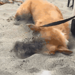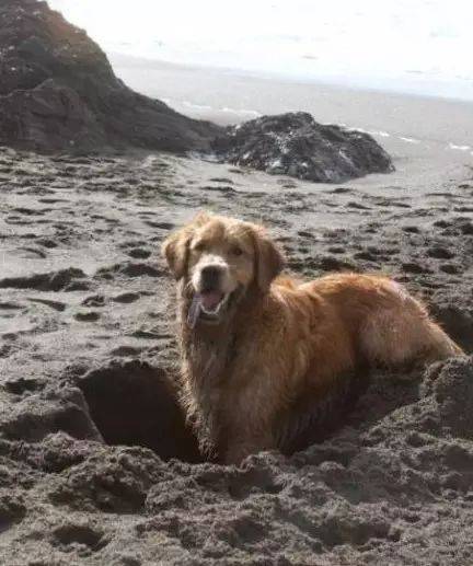 더운 여름 해변에서 개들이 모래를 파고 들어가는 것은 더위를 피하기 위해서입니다. 모래를 파고 들어간 땅은 지면보다 훨씬 시원하답니다.