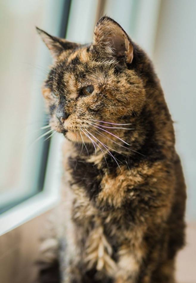 영국 자선 단체 '캣 프로텍션'의 도움으로 입양된 플로시는 비키 그린의 따뜻한 보살핌 속에서 여전히 사랑받고 있다.