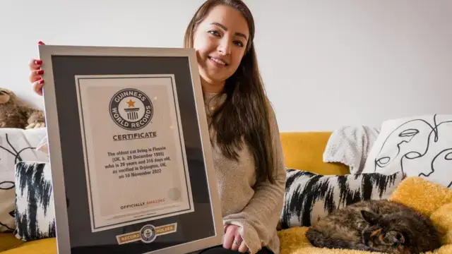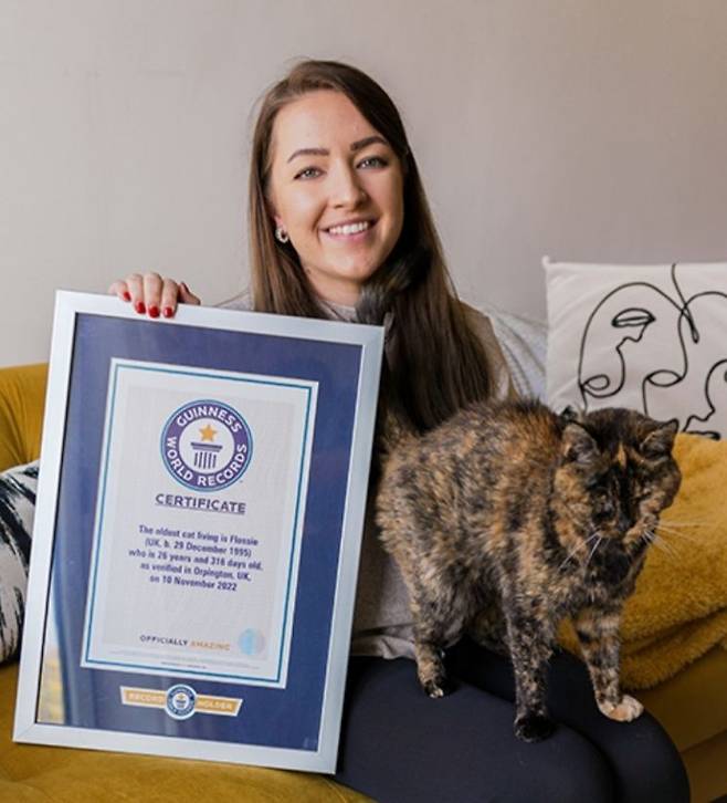 영국 오핑턴에 사는 26살의 고양이 플로시가 기네스 세계기록에 최고령 고양이로 등재되었다. 이는 사람의 나이로 치면 약 120살에 해당하는 놀라운 기록이다.