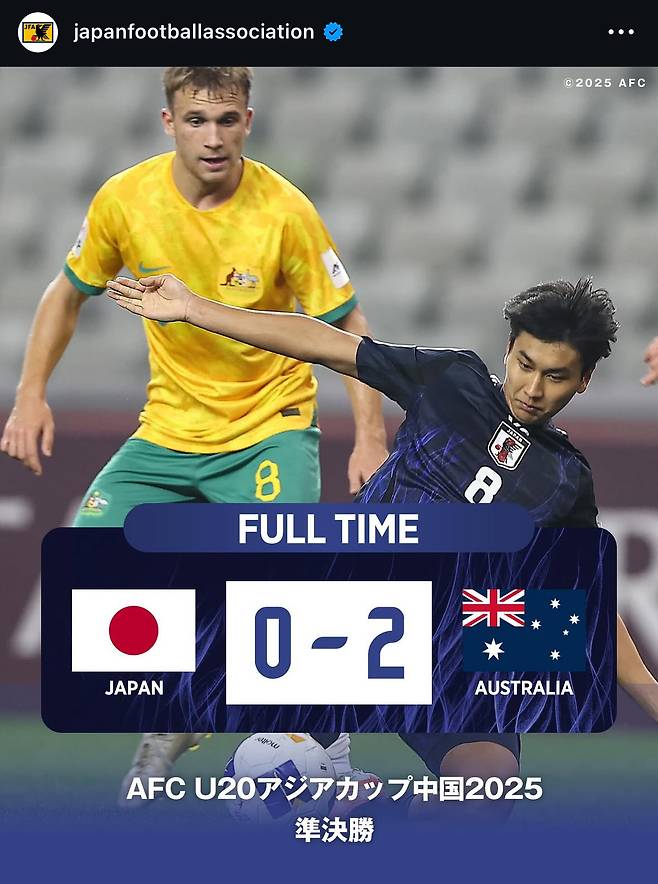 후나코시 유조 감독이 이끄는 일본은 지난 26일(한국시간) 중국 선전 바오안 스타디움에서 열린 호주와 2025 아시아축구연맹(AFC) U-20 아시안컵 4강전에서 0-2로 패하며 고배를 삼켰다.