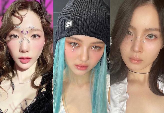 요즘 아이돌 대세 메이크업이라고 하면 단연 파츠를 얼굴에 붙여 연출하는 보석 메이크업이다. 블랙핑크 제니부터 태연, 에스파 카리나, 화제의 아이돌 뉴진스까지 다양한 활용법으로 선보이고 있다. 펜디, 지방시, 시몬 로샤 등 2022 FW 런웨이에서도 화제였는데 눈은 물론 얼굴 전체에 크리스탈, 진주, 메탈 등을 대담하게 사용했다. 데일리 룩으로 연출하기에 부담스럽지 않느냐고? 부위와 크리스탈 모양 등을 잘 골라 활용한다면 과하지 않을 뿐더러 오히려 포인트가 될 수 있다. 이하이, 뉴진스의 메이크업 아티스트가 전하는 팁에 주목해보자!