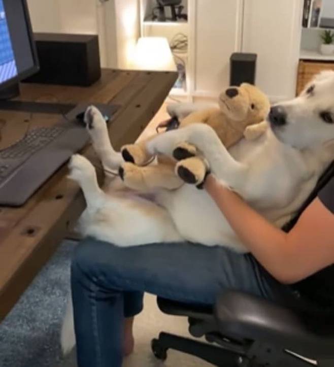 사연은 이렇습니다. SNS상에는 자기 덩치는 생각하지 않고 게임하느라 정신 없이 바쁜 강아지 모습이 담긴 영상이 올라온 것.