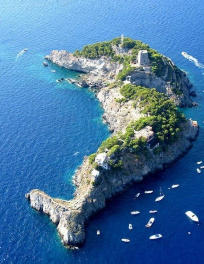 돌고래와 똑같이 귀여운 모습을 하고 있는 갈리 섬은 이탈리아 포지타노 남서쪽에 위치하고 있습니다. 헬리콥터와 보트 접근해야 하는 이 섬은 개인 소유의 섬입니다. 러시아의 전설적 무용수 루돌프 누레예브가 소유했던 것으로 유명한 곳이기도 합니다. 전하는 말에 따르면, 이곳은 호머가 남긴 서사시 ‘오딧세이’의 한 장면의 배경이라고 합니다.