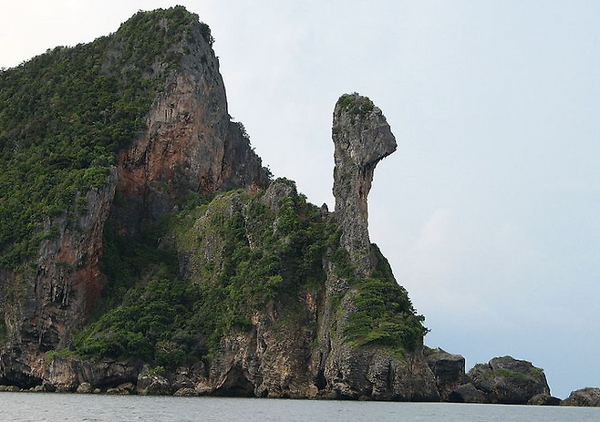 끄라비에서 가장 유명한 관광코스 중 4개섬 투어가 있는데, 투어를 통해 닭머리 모양을 하고 있는 치킨 섬을 볼 수 있습니다. 지금까지 소개한 섬들은 모두 위성이나 섬 위에서만 독특한 모양을 볼 수 있지만 태국의 치킨섬은 4개섬투어를 통해 쉽게 볼 수 있다는 장점이 있습니다.
