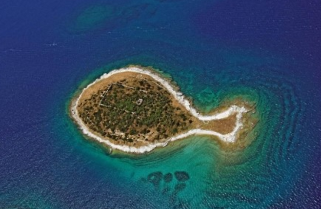 하늘에서 바라보면 붕어빵처럼 생긴 이 섬의 이름은 '가즈 섬' 입니다. 크로아티아의 서쪽, 아드리아 해의 북쪽 끝에는 이스트라 반도가 있습니다. 이스트라 반도 인근 14개 섬을 묶어 브리유니(Brijuni) 국립 공원으로 지정했는데 가즈 섬은 브리유니 14개 섬 중 하나입니다.