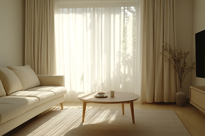 가구나 장식품이 많지 않더라도, 꼭 필요한 것만을 놓고 나머지 공간은 비워두는 방식으로 시선을 정리합니다.