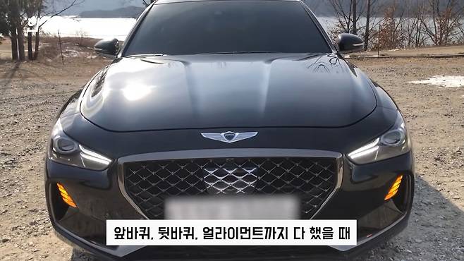 그리고 지금까지도 엔진오일은 다 쿠폰으로 갈고 있어서 한 번도 차에 돈을 써본 적은 없는데, 돈 쓴 거는 뒤에 타이어를 썸머 타이어로 이번에 갈았는데 뒤에 두 짝을 인터넷 최저가 찾아서 간 게 45만 원이에요. 통상적으로 그건 아셔야 돼요. G70을 30,000km 타면 타이어 갈아야 되거든요. 앞/뒤 타이어 한 대 분량 교체에 얼라인먼트 하신다고 생각하시면 100만 원 잡으셔야 됩니다. 제가 알기로 아반떼 타이어는 교체하는 데 싸게 하면 30만 원도 안 하는 걸로 알고 있어요. 평균적으로 한 달에 이 차에 들어가는 돈이 기름값 포함해서 20~30만 원 정도 되지 않나 싶어요.