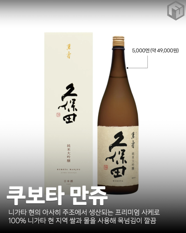 니가타 현의 아사히 주조에서 생산되는 프리미엄 사케쿠보타 만쥬입니다. 쿠보타 만쥬는 100% 니가타 현 지역 쌀과 물을 사용하여 만들어진 사케로 목넘김이 좋고 깔끔한 맛이 특징입니다.