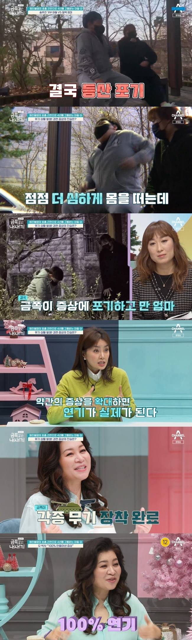 내면의 힘을 기르기 위해 엄마와 산에 오르던 금쪽이는 “너무 무섭다. 미끄럽다”며 중간에 포기해버렸고, 화까지 내기 시작했다.