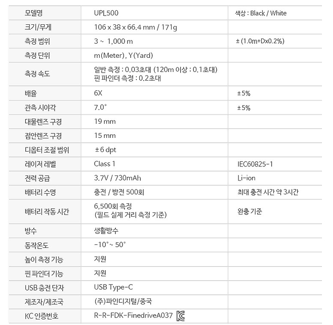 거리측정기, 파인캐디UPL500