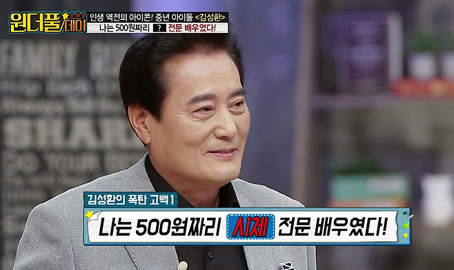 김성환은 1970년 TBS 10기 공채 탤런트로 데뷔해 어느덧 데뷔 54년차를 맞았다. 연기 생활 초기엔 시체, 포졸, 병사 등 단역배우를 맡았지만, 1970~1971년 2년간 방영됐던 드라마 ‘아씨’에서 머슴 역할을 맡으며 인기를 끌기 시작했다.