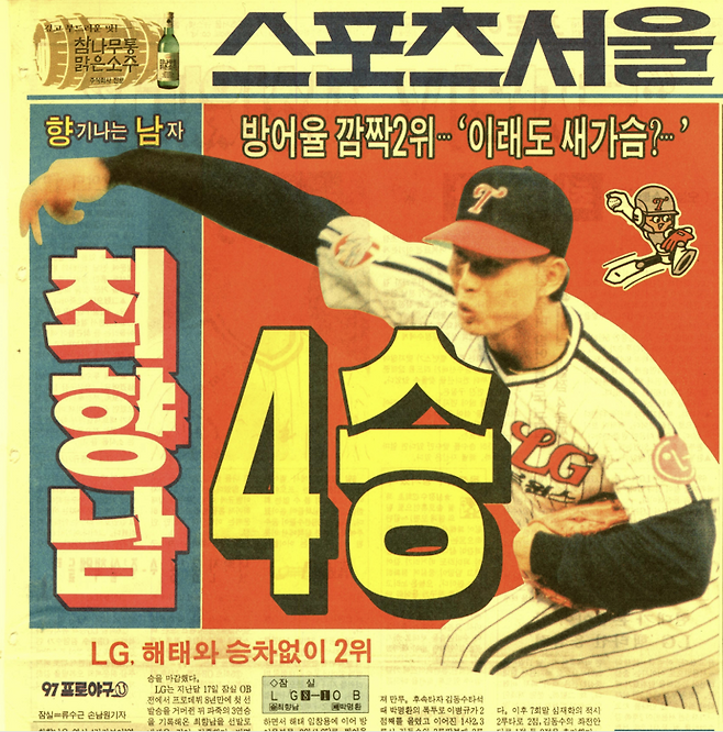 막혔던 혈이 뚫린 것일까. 한번 승리의 물꼬를 트자 연전연승이었다. 최향남은 6월 5일 잠실 OB전에서 7.1이닝 1실점으로 역투하며 4연승 무패를 달렸다. 시즌 10경기 등판 만에 규정이닝에 진입하면서 평균자책점(1.65) 2위, 승률 1위에 올라 ‘인생극장’의 주인공이 됐다.