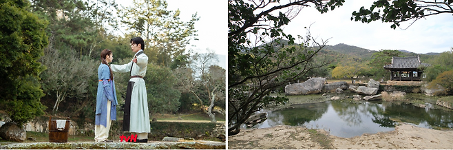 완도에 위치한 세연정은 고산 윤선도가 조성한 전통 정원이다. 흐르는 물길을 막아 연못으로 만든 세연지와 그 옆에 모여있는 배롱나무, 소나무, 버드나무가 고즈넉하면서도 우거진 풍경을 이룬다. 큰 돌을 이어 만든 판석보는 비가 많이 올 때 물의 양을 조절하고 물의 속도를 줄여주는 역할을 한다. 빨래를 하던 무덕이가 장욱을 만나는 배경이 바로 판석보이다. 세연정은 1637년 세연지 연못가에 단을 조성해 지은 3칸짜리 정자이다. 드라마에서는 해가 진 이후의 세연정이 등장하지만 이곳의 관람 가능 시간은 오후 6시까지이므로 방문에 참고하자.
