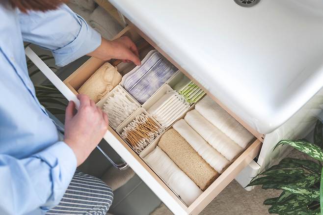 비슷한 물건을 한자리에 모아 두면 어디 있는지 기억하기 쉽고, 같은 물건을 또 사는 일도 줄어듭니다.