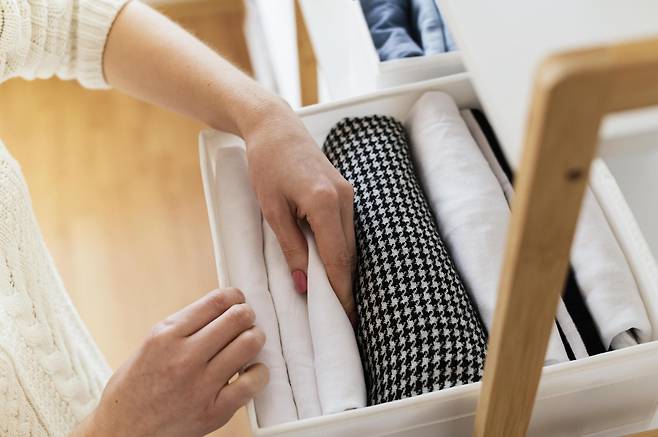 옷이나 파일을 눕혀 쌓기보다 세로로 세워 두면 한눈에 보이고, 꺼냈다 다시 넣기도 수월합니다.