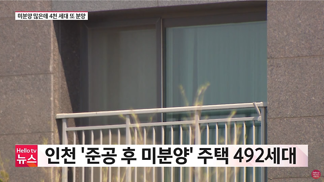 지난 4월까지 집계한 인천지역 준공 후 미분양 주택은 492세대,