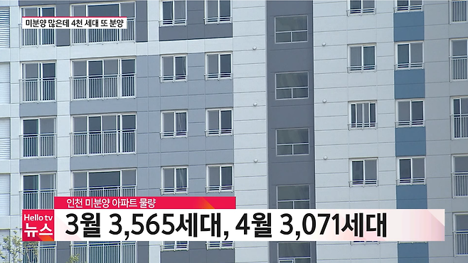 지난 1월 3,209세대를 기록했던 인천 아파트 미분양 물량은 3월 3,565세대까지 늘었다가 4월 3,071세대로 감소했습니다.
