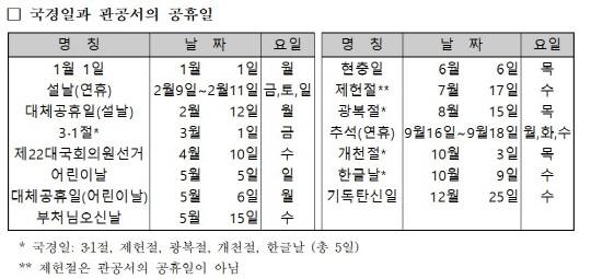 이 공휴일에는 내년도 전국에서 치러질 제22대 국회의원선거일(4월 10일)이 포함된다.