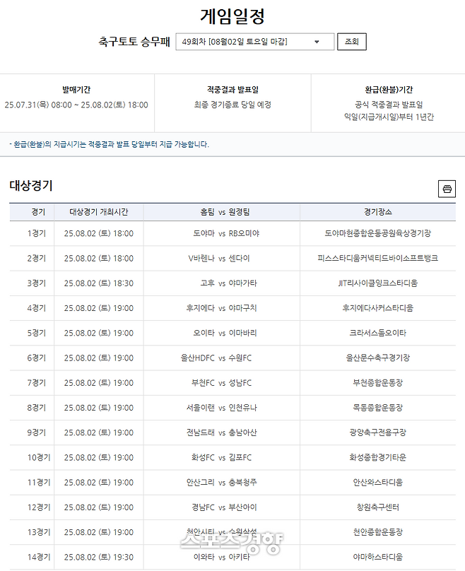 해당 회차는 국내 프로축구(K리그) 및 일본 프로축구(J리그) 14경기를 대상으로 한다. ▲울산HDFC-수원FC ▲서울이랜드-인천유나이티드 ▲천안시티-수원삼성 ▲도야마-RB오미야 등 주말 주요 경기가 포함돼 축구팬들의 많은 관심이 예상된다.